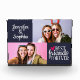 Create a unique and modern photo block to celebrate friendship with your BFF (best friend forever) and customise it by adding your names and two of your favourite pictures with a trendy "Best Friend Forever" lettering overlay with a pink heart on a modern dark blue background.