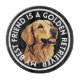 Calling all dog lovers! This doggy design features a beautiful golden retriever on a black circle with white frame and the words, "My best friend is a Golden Retriever." It makes the perfect gift for any pet owner.