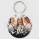 Create your own personalised best friend keepsake with this custom photo keychain, featuring your favourite design on the front and a second photo on the back. The front includes the word "besties" in elegant white script calligraphy, accented with small white heart details for a sweet and playful touch. A subtle black gradient at the bottom adds contrast without taking away from your image.