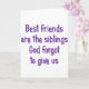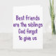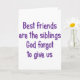Wonderful gift for a friend that has always been there. This saying goes beyond BFF! Reads "Best friends are the siblings God forgot to give us."