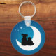 Customisable keychain with cute illustration of a cat and a dog sitting together on the moon.