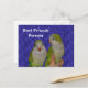 Adorable pair of baby Quaker parrots or monk parakeets Best Friends Forever postcard. Animal photography by Susan. Click on Customise to add text. If you need help or have any requests, please contact me. This image is available on many products in my gallery. Please visit Smilin' Eyes Treasures to see more flower and nature photography and digital art cards and gifts.