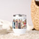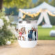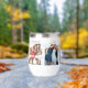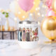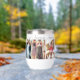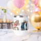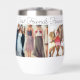 On a white thermal wine tumbler are 6 photos honouring women friendship with an elegant script on the bottom with the text, best friends forever where you can customise the title and photos to your liking.