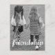 Celebrate the beauty of true friendship with this heartfelt black-and-white friendship postcard featuring two young friends walking hand-in-hand with the word friendship across the image.