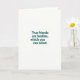 This greeting card keeps things simple and puts the message front and center. In the middle of the card, it reads, “True friends are families, which you can select.” The text is in teal and uses a slightly rounded serif style that feels warm and easy to read. It sits on a plain white background with no characters or extra objects, so your eyes go straight to the quote. The spacing around the words gives it a calm, open feel, like a quiet reminder of how much chosen friendship matters. Overall, it’s a thoughtful card for a close friend or someone who feels like family ❤️💌.