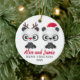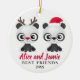 Best friends ornament to celebrate your friendship. Christmas ornament featuring two funny pandas wearing up Santa hat and Rudolph red nose reindeer. Personalised with your names.