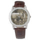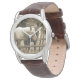 The watch looks really great! Very sharp and well done. The leather band is really nice, though for a man's watch I think it should be longer. Unfortunately, it isn't big enough for my husband's wrist but I will get a replacement because he is very excited to wear it!