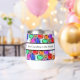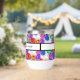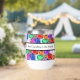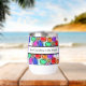 Best Grandma in the World typography in black against white background black outlined rectangle. Love NAME on backside. Pretty colourful artsy flower petals watercolors in pink, red, orange, green, blue, purple against white background. Original Artwork by TamiraZDesigns.