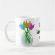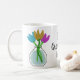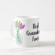 Make your grandma happy with this pretty and lovely mug. The design features three flowers in blue, gold, and pink with a glitter effect in a vase filled with water.
