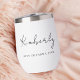 Give the best grandma ever a gift she will love with this chic custom thermal wine tumbler, showcasing her name monogrammed in a stylish calligraphy script and "Best Grandma Ever" in elegant typography. Personalise whether she is called grandma, nana, gigi, grammy, etc. If needed, edit in the design tool to increase or decrease the script size for longer or shorter names.