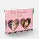 Design your own shelf sitter or desk ornament acrylic photo block with this pretty pink photo template with space to add custom photos. Upload your favourite picture and customise the hearts with your personalisation. A great gift for Grandma on Mother's Day or a birthday when you add your own photo of the kids. Features a soft pink cover with glitter heart backgrounds on the heart photo templates.