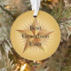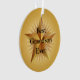 A graphic image of a gold star by artist/designer Charmaine Paulson on a award Christmas ornament.