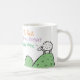 Mug for someone who brews his own beer. Funny cartoon of a sheep on the top of a hill. The sheep says "Best Baaa None". Design repeats on both sides
