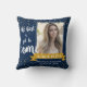 Best Is Yet To Come Blue Gold Photo Graduation Throw Pillow . The design has a blue background with stars and a space for a photo of your Grad with an inspirational quote BEST IS YET TO COME written in fun brush font . customise the design by changing the photo and the name and year . For anu further customisation , feel free to contact me at mypaperlove2021@gmail.com