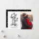 This New Year holiday photo card features the phrase "the best is yet to come" in black on a white background with your custom greeting below it. Your photo is displayed to the right. The back is a black and white pattern.