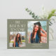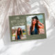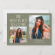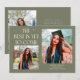 Modern and whimsical graduation announcement photo card featuring2 photos on the front and 1 on the back. The text says "The Best Is Yet To Come" with twinkling stars. Add the graduate's name, information, and message to personalize this card. Sage green color.
