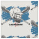 Bold lacrosse design with lacrosse helmet and crossed lacrosse sticks with blue background. Lower LACROSSE letting with red x cross. Great lacrosse gift for lacrosse players and fans!