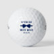 These golf balls are a great favour for the best man in your wedding. They feature a blue bow tie with the best man's name above it in a modern CAP font and the words Best Man along with the wedding date below. They'd be great for a bachelor party or weekend. The job title can be changed to Groomsman, Groom, Usher, etc.