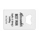 This modern typography bottle opener makes a perfect wedding gift for your best man! Customise with the name of your best man, the names of the people getting married, and your wedding date. The background colour of the bottle opener can be changed to fit your preference.