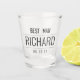 This cool and modern Best Man typography shot glass design is the perfect gift for the Groom's bridal party. It features simple black typography with a personalised date and monogram name. Customise the text colour by clicking the "customise" button to access more options.