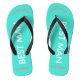 Bright beach colours in turquoise blue with Best Man written in uppercase white text and Name and Date of Wedding in coral with black accents. Personalise with Best Man's Name at top in capital letters in fun arched text. Cool beach destination flip flops as part of the wedding party favours. Your bridal party will love having their own personalised pair. Original designs by TamiraZDesigns.