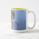 Cool Best Man wedding favours. Beach or destination wedding theme. Personalise with Bride and Groom's first names and date of wedding underneath With Love From. Background has blue sky with pretty close-up of three palm trees with fronds blowing in the ocean breeze. Fun keepsake wedding favour mugs for the wedding party. Original Photography design by TamiraZDesigns. Visit my store for more Original designed items via: www.zazzle.com/tamirazdesigns