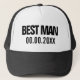 Best Man trucker hat for bachelor wedding party. Custom groomsmen caps. Personalise with your own name or date. Custom gifts for request or proposal.
