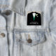 Best man tuxedo buttonhole green rose name badge. Smartly dressed best man in tuxedo and black bow tie graphic wedding name badge. Reads Best man Patrick. Personalise with your own name and title. A great personalised gift idea for male bonding on bucks nights / stag nights, wedding rehearsals or as a wedding favour. Art and design by Sarah Trett for www.mylittleedenweddings.com