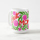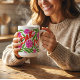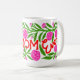 This is a vibrant and floral "Best Mom Ever" Mother's Day Mug features a wrap-around design with a bold, hand-painted writing, leaves and flowers. This mug is covered in a lush pattern of bright carnations and green foliage with a adorable Mothers Day Message.