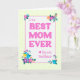 A pretty Mother's Day card for the BEST MOM EVER. The design has a yellow check gingham border surrounding the words, 'To the BEST MOM EVER Across the Miles', in magenta pink lettering on a lightly textured white background. There are bright clusters of multi-coloured flowers in the corners and a small magenta pink heart. The inside message can be customized or deleted if you wish.