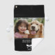 Upgrade your golf gear with our elegant customisable golf towel, available on Zazzle. This stylish accessory is divided into three sections and designed with a classic black background, customisable to your liking.