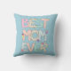 Celebrate Mother's Day with this cute blue throw pillow that features whimsical text that reads 'Best Mum Ever.'