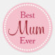 Ideal gift for Mother's Day. Red pink text template reading Best Mum Ever. Template can be used to change the words, text colour, size and font. Background is pink but can be customised to any colour of your choice. Framed with a ring of white dots.