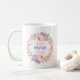 Cute Mother's Day coffee mugs personalised with "Best Mum Ever" quote. Add your own custom name or message in the pretty pastel pink and purple watercolor floral wreath. Use the design tools to choose any background colour, edit the text fonts and colours and add your own photos to create a one of a kind Mother's Day gift for mum and grandma.