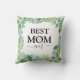 This pillow features a modern watercolor leaves and foliage wreath with BEST MOM EVER text.