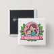 Adorable badge/pin ideal for Mother's Day. A cute illustration of a mother and her child giving each other a loving hug. Both are wearing a blue shirt and have brown hair. Both have a loving smile and rosy cheeks. They are set inside a pink circle with sparkles and two love hearts dotted around. Below them is a pink banner with an elegant script reading 'Best Mum Ever', this is a template that can be used as it is or replace the original text with your own to personalise. Surrounding the circle and banner are green leaves and pink flowers. A pretty drawing ideal for your mum.