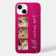 Best Mum Ever Photo Picture Elegant Script Pink iPhone 14 Smart Phone Cases features a modern and trendy simple and stylish design with the text "best mum ever" in elegant hand written calligraphy script typography on a metallic pink shimmer background. Add three of your favourite photos to personalise. Designed by ©Evco Studio www.zazzle.com/store/evcostudio