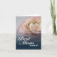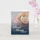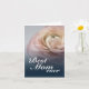 Close-up of pink rose on blue background and Mother's Day greetings. The rest of the card is free to design.