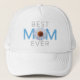 Best Mum Ever With Daisy Image Print Trucker Hat (blue version 2). The cute design shows "MOM" with a stylised image of a daisy positioned as the "O". Graphic leaves are overlaid on the two "M"s. The "Love Always" copy can be changed to your desired preference. Makes the perfect gift for your much loved mama for Mother's Day, for her birthday, or for Christmas. Thank you for the support and visiting my store - UniquelyDistinct. Feel free to transfer this design on other Zazzle products.