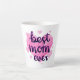 This latte coffee mug is shown with a best mum ever wish with hearts.