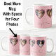 Design your own photo mug with this cute pink photo template with space to add 4 custom photos. Upload your favourite pictures and customise the name with your personalisation. A great gift for Mum when you add your own photos of the kids or pets! Features a pink cover with glitter heart backgrounds on the heart photo templates.