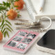 Personalised mum keychain with a stylish black background that can be changed to any colour, 6 family photos on one side, on the reverse the words "best mummy ever", and the names and birth dates of the children.