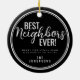 Best Neighbors Ever Modern Black and White Ceramic Ornament. Celebrate the wonderful people next door with this 'Best Neighbors Ever!' holiday ornament. The elegant script font and bold text make a clear and heartfelt statement, perfect for showing appreciation during the festive season. This black and white design is timeless and classy, fitting in with any holiday decor. It's a thoughtful way to thank your neighbors for their kindness and friendship throughout the year. Hang it on your Christmas tree as a reminder of the special bond you share.