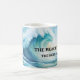 Mug featuring a watercolor painting of a big wave on the beach. Beautiful for a beach house or anyone who loves the beach or surfing.