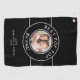 Creating your own personalised golf towel is super easy with our online template. All you need to do is upload your favourite photo and type in a monogram, name, or any text you want. You can also choose the colours of the text and the background to match your Pop Pop’s style. The photo and the text are printed in white with two circular white borders, which contrast with the solid black background.