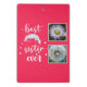 Cute, girly illustration with hair, eyelashes, and little stars and two photo templates. Click personalise to change the pictures to your sister's (square photos works best), or buy it as is.