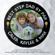 Create a custom personalised photo golf ball for a golfer stepfather with the editable funny title BEST STEP DAD BY PAR and name(s) or other custom text shown in white text accented with a gold golf ball and tee against an editable black background colour you can change to a coordinating golf bag colour or his favourite colour. Memorable keepsake gift for Fathers Day, his birthday or the holidays. ASSISTANCE: For help with design modification or personalisation, colour change or transferring the design to another product, contact the designer BEFORE ORDERING via the Zazzle Chat MESSAGE tab below or email makeitaboutyoustore@gmail.com.