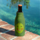 This awesome bottle cooler features a bright green apple with a big wide smile and rosy red cheeks.