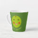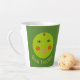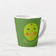 This awesome latte mug features a bright green apple with a big wide smile and rosy red cheeks.