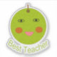 This awesome shaped sticker features a bright green apple with a big wide smile and rosy red cheeks.